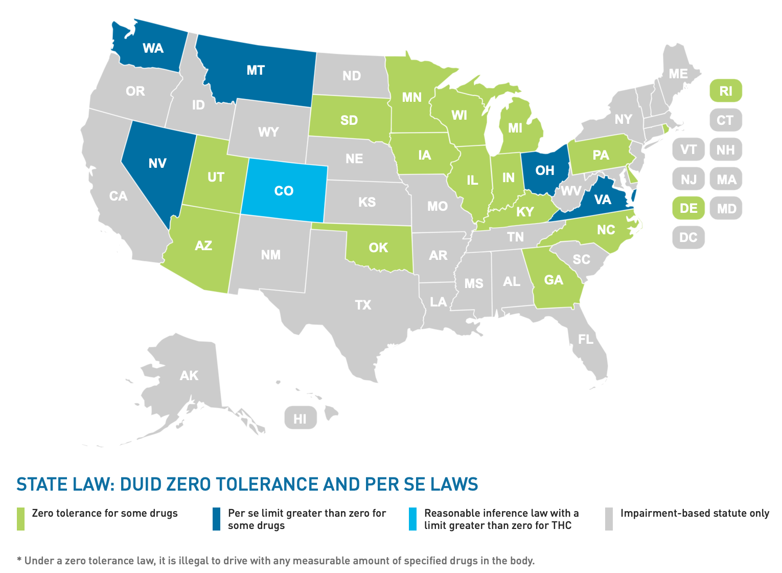 In the absence of scientific consensus or public awareness about its possible effects at various dosages, fentanyl intoxication behind the wheel has fallen into a murky political space. In the 16 states that have zero tolerance laws for drugged driving, it’s illegal to operate a car with any amount of fentanyl in one’s system; in the remainder, though, fentanyl use falls under the vague umbrella of laws that prohibit driving “under the influence” in general, with some states failing to specify what that actually means in practice. None of the five states with “per se” laws that set non-zero limits for some drugs do so for fentanyl.