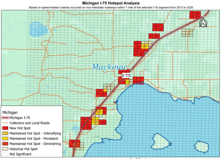 In an analysis of three U.S. highway segments whose maximum speeds were increased at some point in the last decade — I-85 in Georgia, I-84 in Oregon and I-75 and I-69 in Michigan — researchers found that all reported significant new “clusters” of speeding-related crashes within a one-mile radius of the interstate.