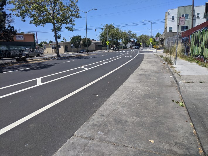 Work on the project, funded by Oakland’s 2016 Measure KK, should be finished in the fall. After that, advocates can start campaigning for the parking-and-curb-protected bike lanes the city should have built in the first place.