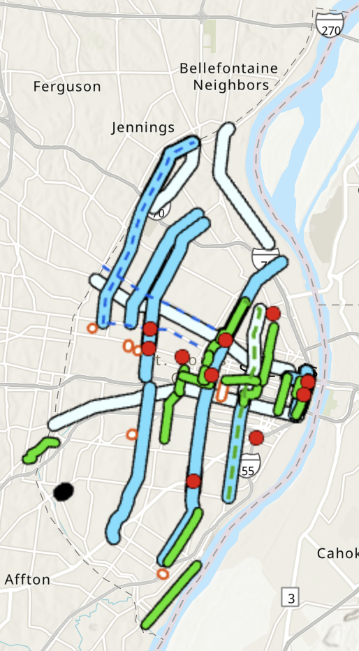 And as those foundational shifts are happening, big projects are still getting pushed forward. The regional light rail network, Metrolink, is in the final stages of planning the first rail route to connect the overwhelmingly Black north side and with the central corridor and the southern half of the city, bridging the infamous Delmar Divide; the Missouri Department of Transportation is even talking about building its first-ever protected bike lane on a state-owned road.