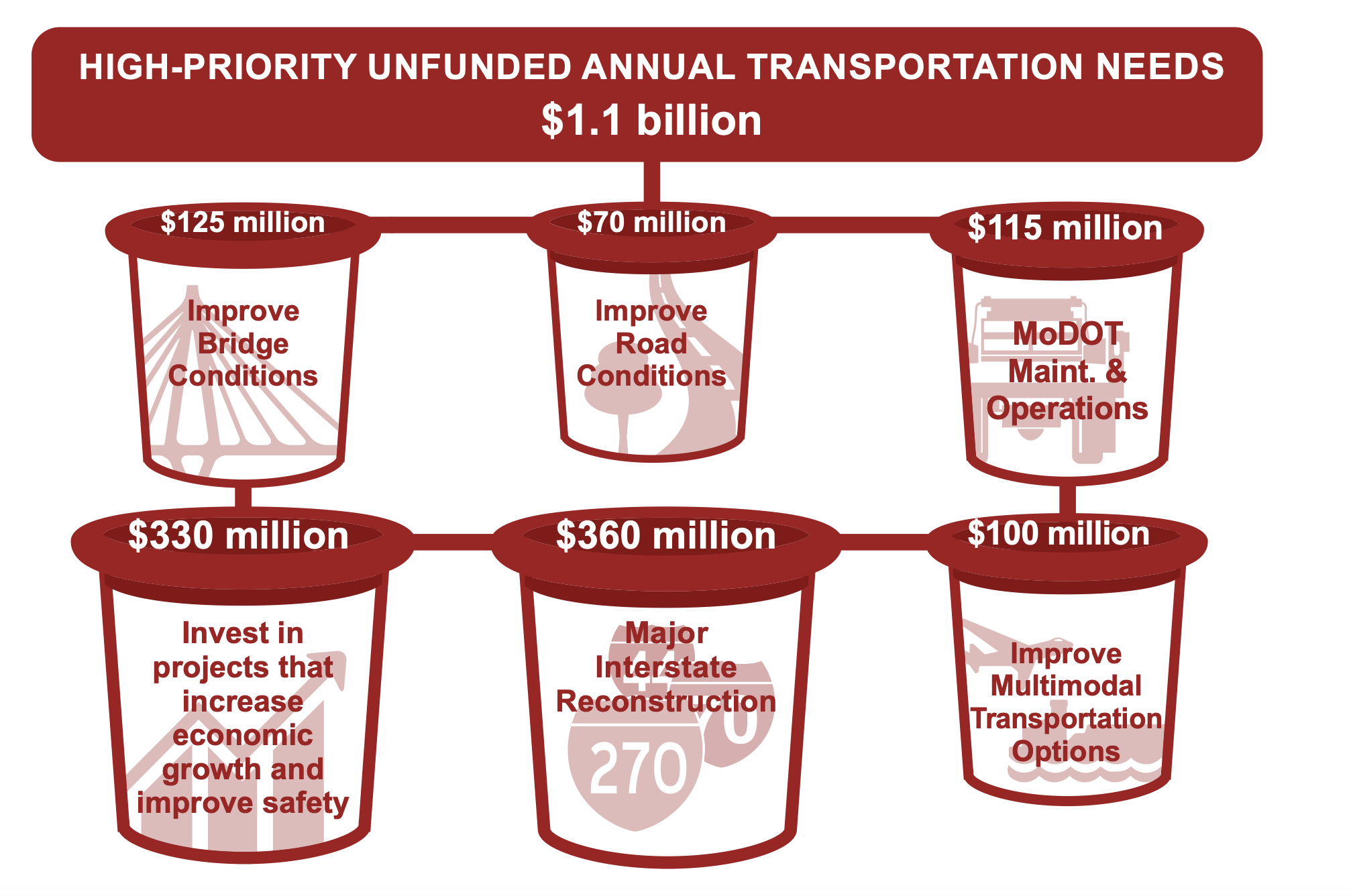 If advocates can push policymakers to pass similar bills promising funding for multimodal projects, though, it would place pressure on MoDOT to bump those efforts to the top of the queue — especially if they’re are already on the agency’s list of High Priority Unfunded Needs, which includes a cool $100 million a year in multimodal projects.