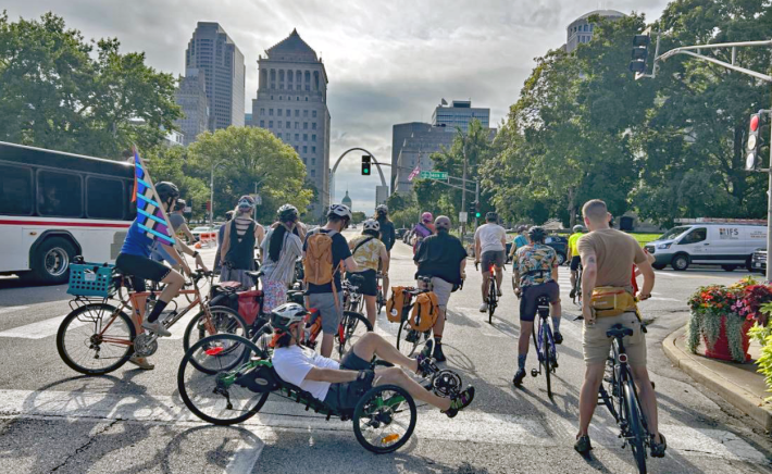 On the recent bike tour of those upcoming projects hosted by Mayor Tishaura Jones, one of the largest groups to be invited was the St. Louis Coalition to Protect Cyclists and Pedestrians — or, as they sometimes jokingly refer to themselves, CP2. In addition to gaining the ear of the mayor, the collective has become a frequent feature on local news stations for their creative efforts to push for better policy and design, even in an era of historic investment when other advocates might be taking a victory lap. (Disclosure: as a local advocate myself, I’ve participated in a number of these events.)