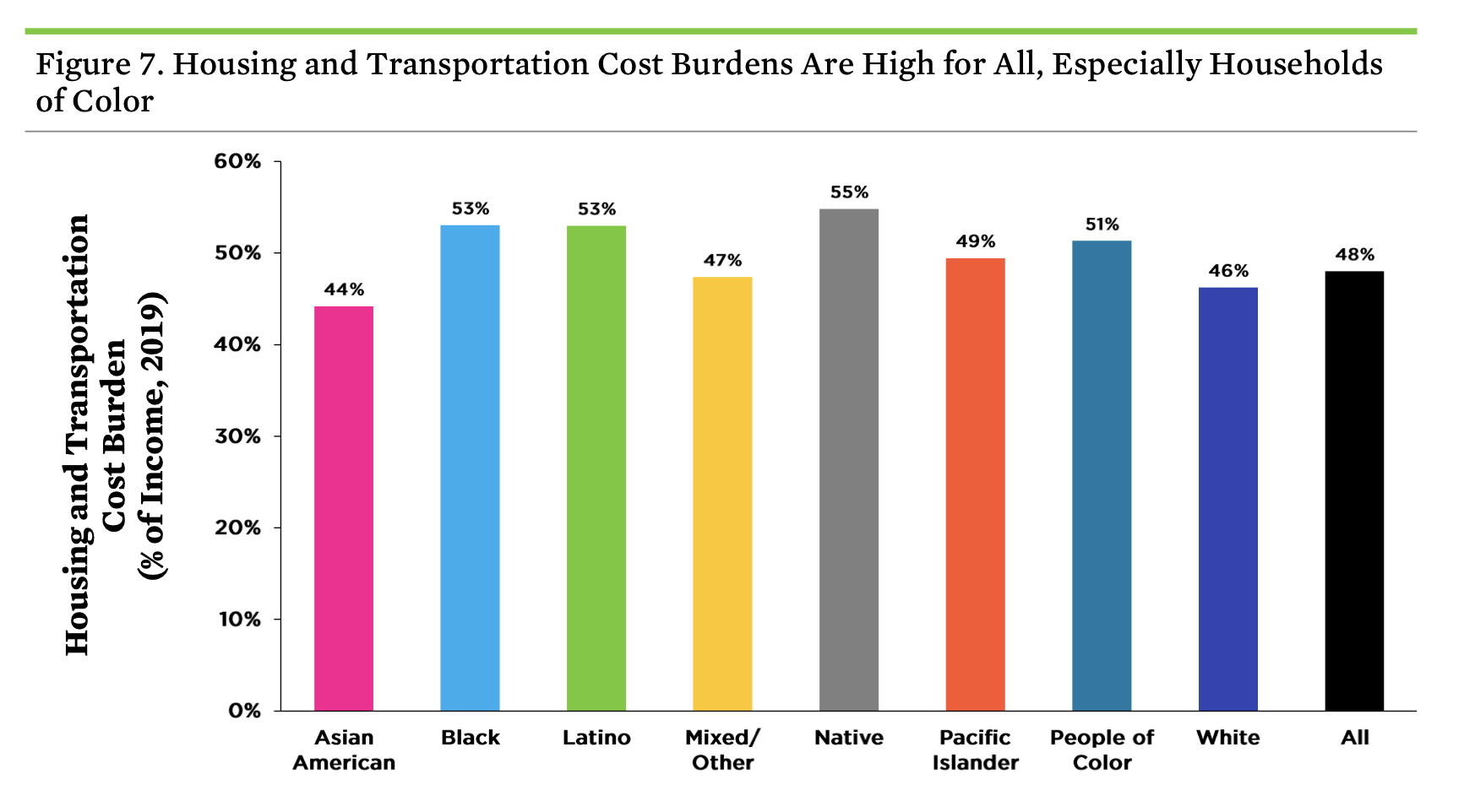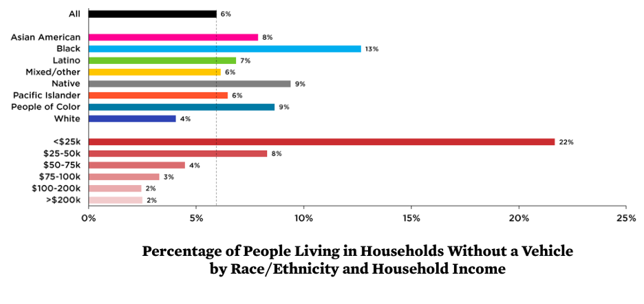 The researchers point out that roughly 30 percent of U.S. residents don’t drive, whether because they are too young, because they have disabilities that make driving impossible, because they can’t legally get a license, or even because they simply can’t afford to. About 60 percent of Americans live in neighborhoods where the combined costs of housing and transportation are unaffordable, the researchers found, and people of color were 14 percent more likely to be cost-burdened by these basic necessities.