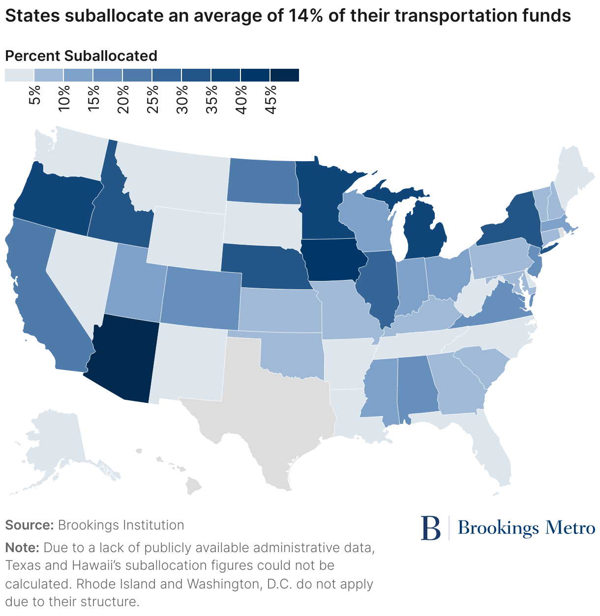 In a wonky but critical new study of all 50 state DOTs, researchers at the Brookings Institution found that states only give an average of 14 percent of their federal formula funding back to municipalities to spend on local projects, even though “the share of gas taxes states collect on locally owned roads tends to far exceed the share of revenues sent back to those local owners.” The agencies at 15 states, meanwhile, sent less than 5 percent of that money back to municipalities — and the public often has little knowledge of how the rest of the money was spent.