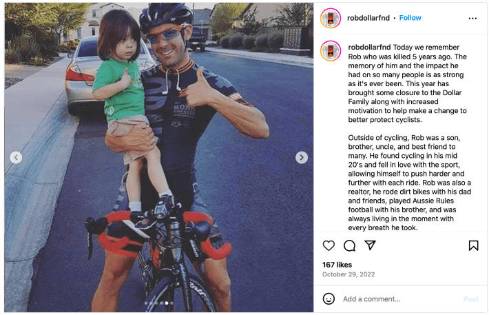 “I’ve been to some bike summits, and there’s a lot of money out there, but everything is data-based — and we have no data,” said John Dollar, Rob’s father and the executive director of the Rob Dollar Foundation, which works to save cyclists’ lives. “I mean, how do you collect data [on close passes]? With all the data that [CycleSafe] can collect, there’s a lot of good that we can do.”