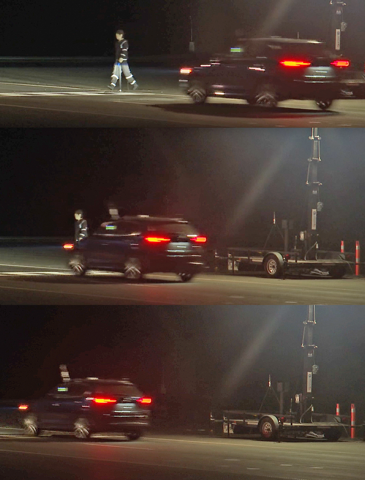 The tests were run at 25 mph in three conditions — with no roadway lighting, with 10 lux of illumination and with the federally recommended 20 lux of illumination. Every time the test was run, no matter the lighting conditions, the Honda CR-V and the Mazda CX-5 hit the dummy with the reflective strips. And the Honda hit the dummy with the reflective jacket every time, too.