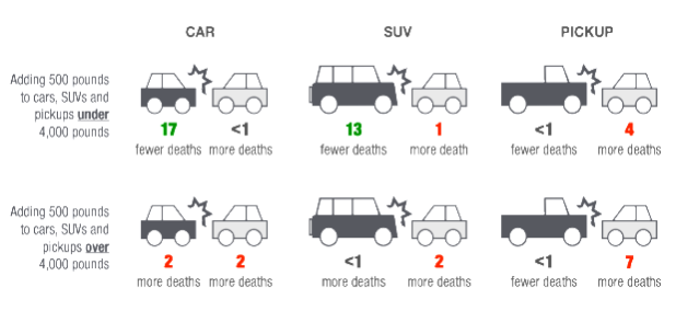 Put another way: there’s no real safety justification for making America’s famously bloated fleet any heavier than it already is.