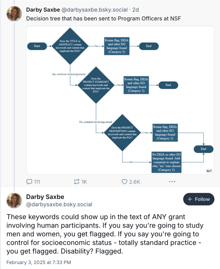Advocates are still attempting to measure the full scope of the purge, but Nature recently reported that at the National Science Foundation alone — a $10-billion grant-making agency that is among the leading funders of science and engineering research in the country — “around 10,000 research grants have been flagged for review” for possible violations of the executive orders, based in part on searches for broadly-used keywords that frequently arise in papers about the U.S. transportation system.