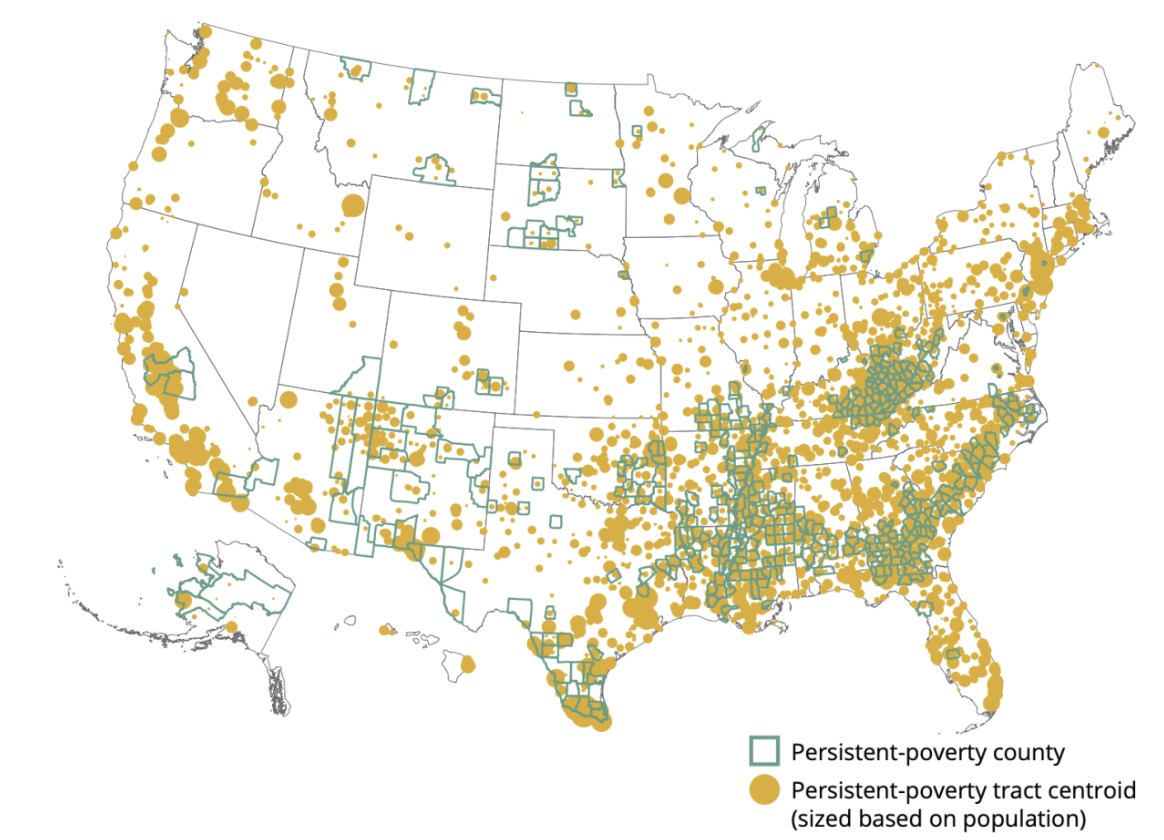 Both approaches are likely to privilege rural areas — about half of the Biden-era grants went to them — but analysts at the Daily Yonder found that defining “disadvantage” based on persistent poverty alone could mean that “poor urban neighborhoods get overlooked when their economic performance is averaged with more prosperous parts of an urban county.”