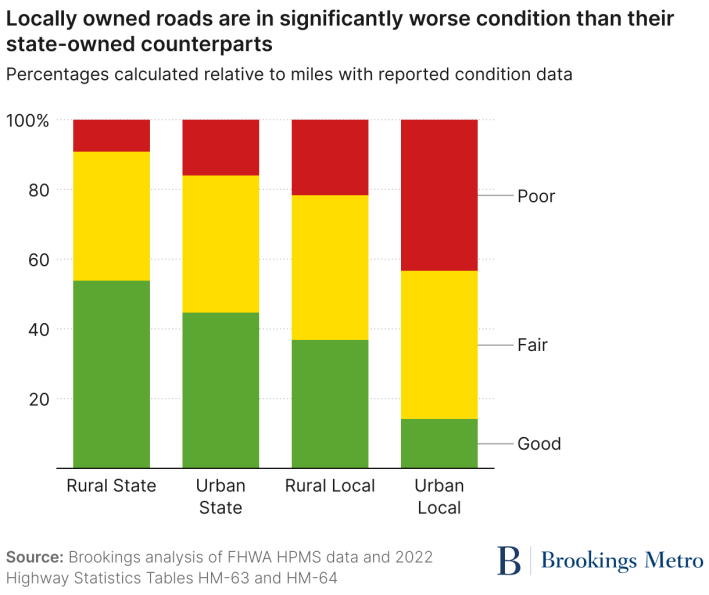 The patterns are clear: While much of the country’s highest echelon of roadways are in good condition, too many major American roads owned by local governments are not.