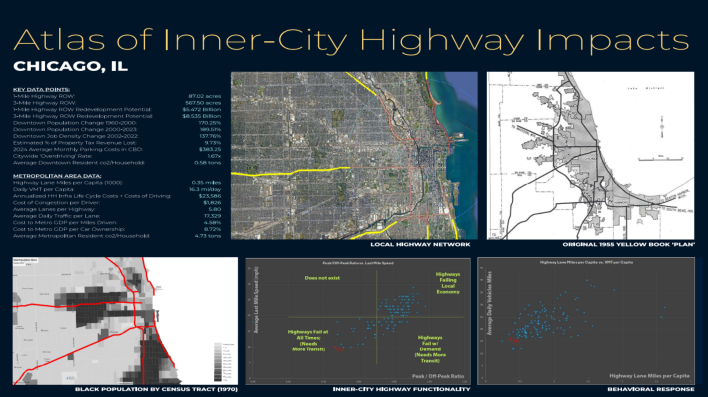 To help advocates illustrate the collective costs of their specific city’s highways, Kennedy developed a one-sheet list of fast highway facts about each community (which are too numerous to explain in full here), and invites advocates to contact him for more granular data.