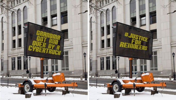 Of course, the Denver vandal wasn't the first to take part in a little reversible urban graffiti — or to take advantage of the surprisingly lax security around variable messaging signs, which can seemingly be easily altered after accessing the control pad with a password that many communities don't even bother to change from its factory setting.