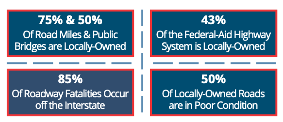 As a result of that gulf, the Local Officials in Transportation Coalition say that locally owned roads and bridges are twice as likely to be rated in poor condition — and they're also home to a disproportionate share of roadway fatalities, which are difficult to reduce without money for lifesaving infrastructure. And in the meantime, metropolitan planning organization are sitting on long lists of transportation safety projects that they can't actually build.