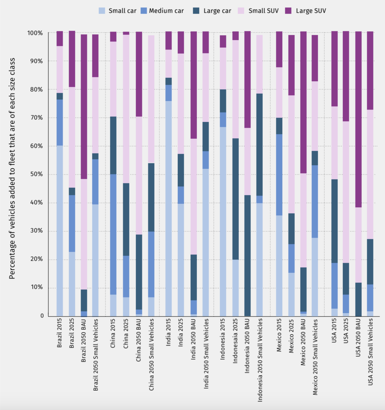 Described as “the first known country-level analysis of the impact of growing vehicle sizes in urban passenger transport,” the study draws on data from six major nations including the United States, as well as “extensive, iterative reviews with country-level experts” who could speak to the specific potential for transportation reform in each nation.